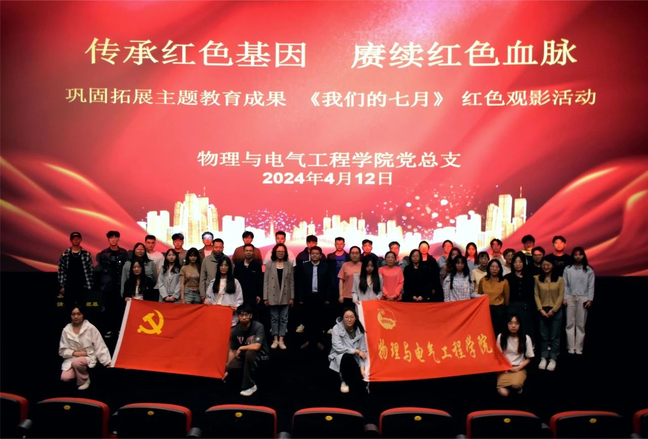 4月12日下午,物理与电气工程学院党总支组织开展“铭记革命历史 传承红色精神”主题党日活动,观看党史题材影片《我们的七月》,学院师生党员共60余人参加。