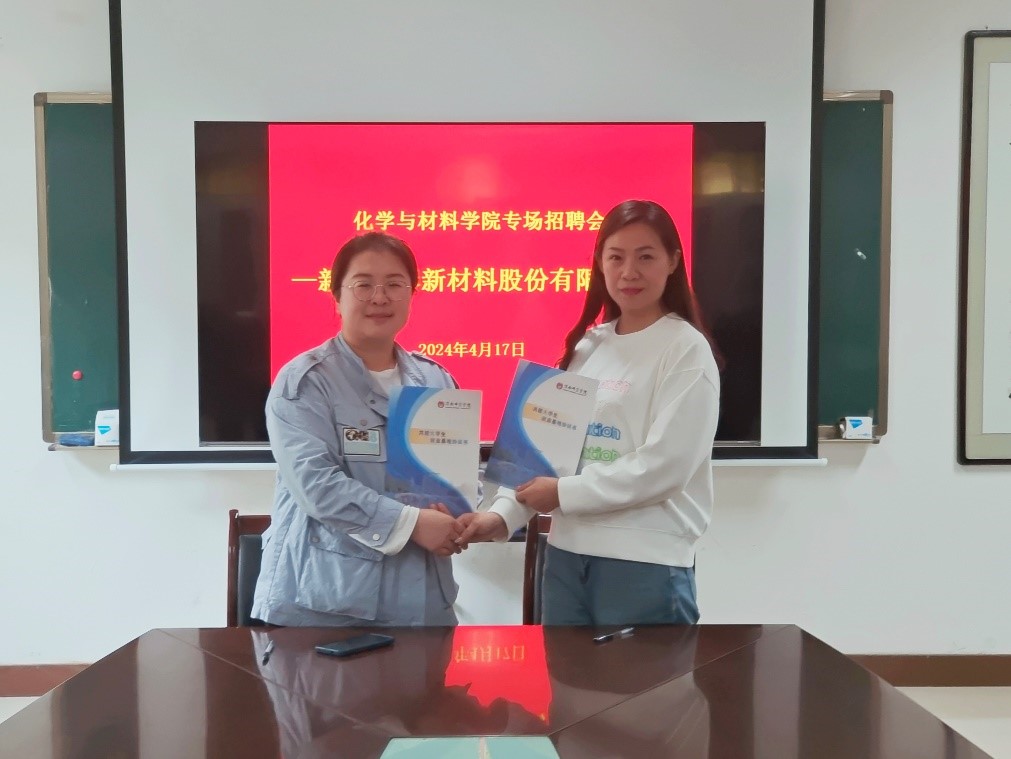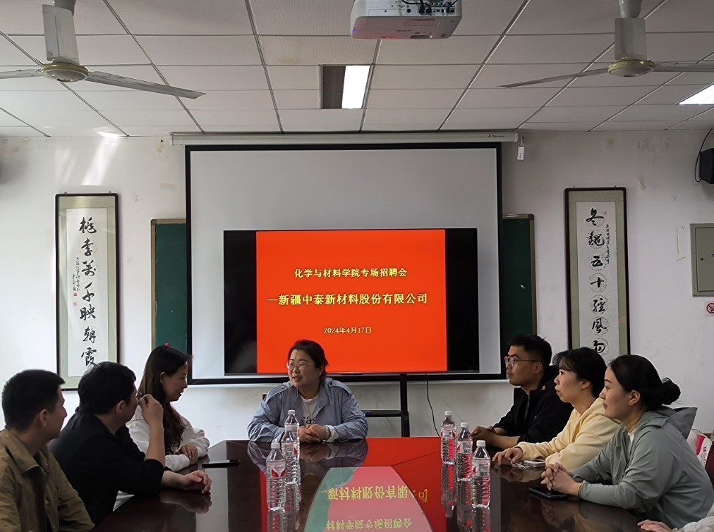 随后,新疆中泰新材料股份有限公司在学院会议室举办专场宣讲会。化学与材料学院60余名2024届毕业生意气风发的来到学院会议室参加专场招聘活动。招聘单位人力资源部负责人向参会同学详细介绍了中泰集团的发展概况、职业发展和薪资待遇等,回答了毕业生关心的相关问题,播放了企业宣传片,招聘单位提供岗位近60个,现场签约7名学生。
