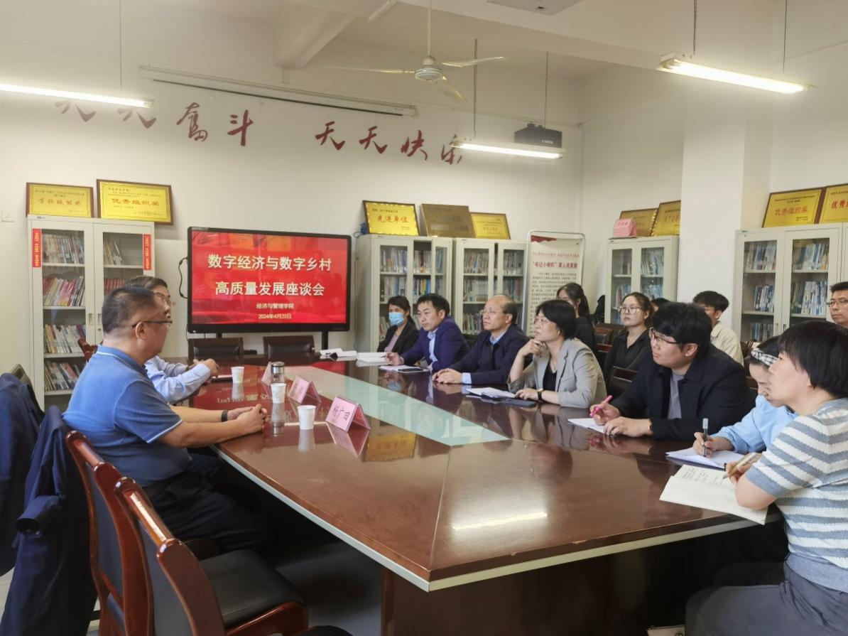 4月23日下午,经济与管理学院邀请西部数字经济研究院院长张鸿、副院长刘进海、杨广田,在1518会议室,举行数字经济与数字乡村高质量发展座谈会。经济与管理学院党总支书记李富荣、院长袁梁、副院长王留鑫以及部分老师参加了座谈会,会议由李富荣主持。