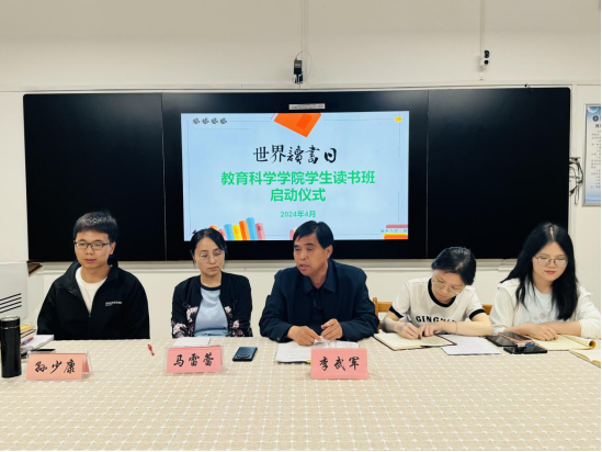 活动伊始,李武军宣布教育科学学院学生读书班启动仪式正式开始。他详细介绍了读书班创办的意义和价值,强调全体师生要牢记“为党育人,为国育才”的使命和担当,教师和学生要形成读书共同体,互相交流,互相探讨,为培养新时代的大国良师注入活力,并带领全体成员学习“毛泽东发奋读书的动力是什么?”等文章。随后马雷蕾领学了“习近平致首届全民阅读大会举办的贺信”,并倡导全体师生都参与到阅读中来,形成爱阅读,读好书,善读书的浓厚氛围,为打造书香教科贡献力量。