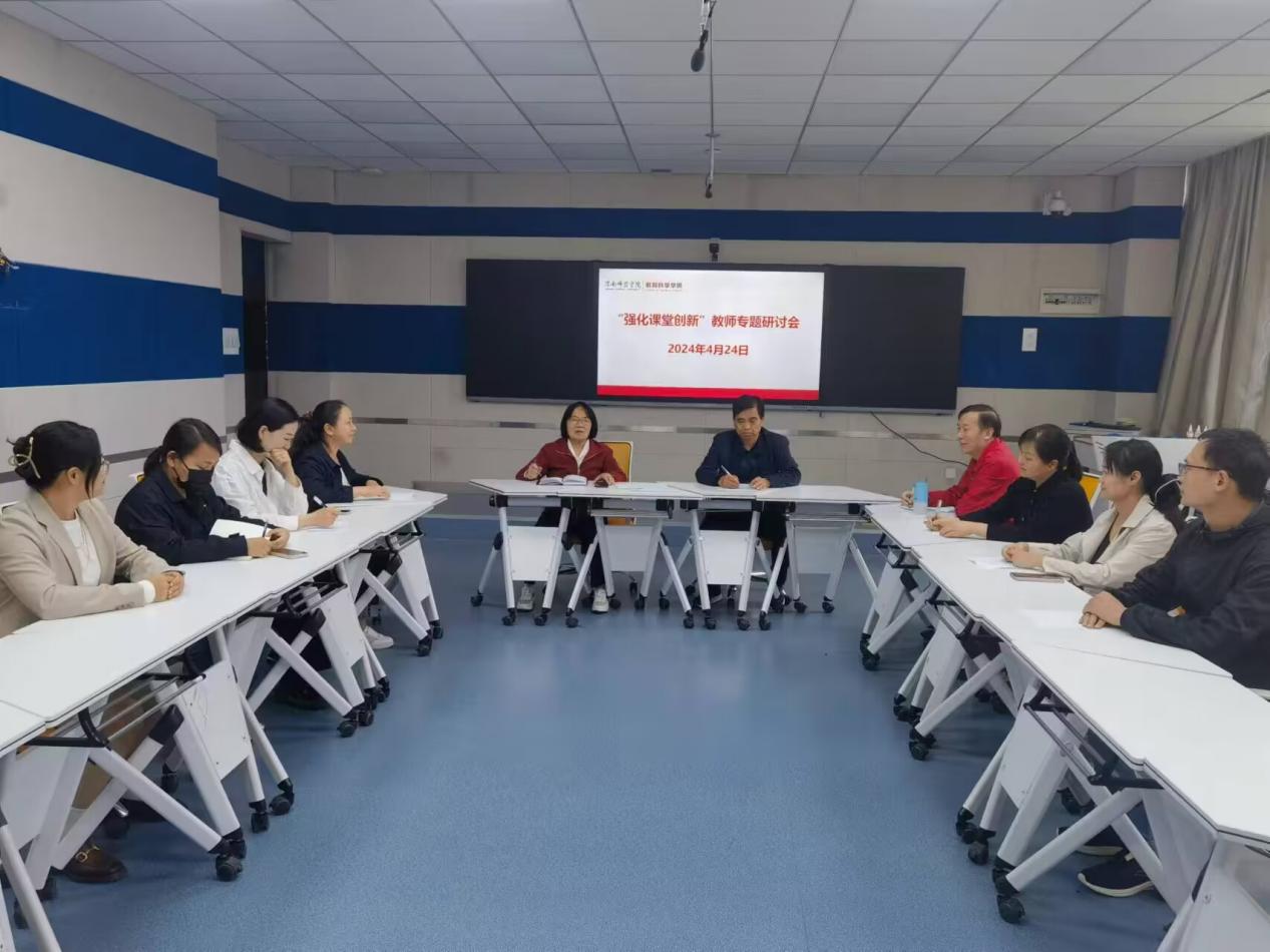 “强化课堂创新”教师专题研讨会上,首先大家重温学习了今年政府工作报告中对教育改革提出的主要目标任务,即五句话。随后各位教师积极分享了自己在教学实践中的创新经验和方法,探讨了如何设计有趣的教学活动提升课堂吸引力,以及如何培养学生的创新思维等重要议题。部分教师积极进行教育教学改革,实现了线上线下结合,台上台下互动教学。同时又提出一些问题,分析了成因并提出改革措施。教师们一致认为,课堂创新是提高教学质量的关键,只有不断与时俱进,才能促使立德树人质量再提高。