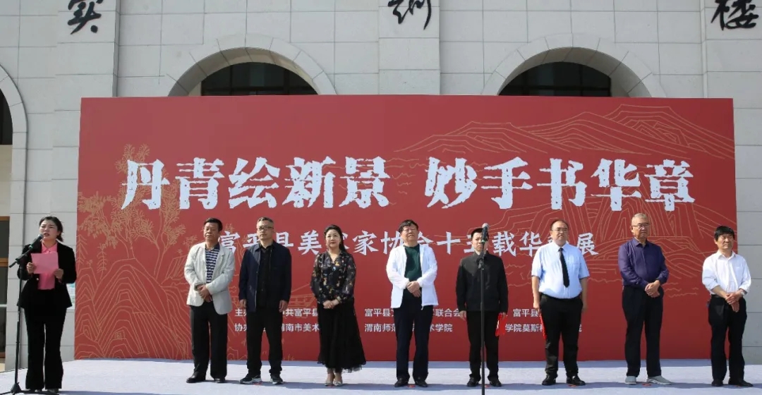 4月28日上午,“丹青绘新景 妙手书华章”书画展在588888纽约国际线路富平校区正式开展。中共富平县委宣传部、富平县文学艺术界联合会、渭南市美术家协会、富平县美术家协会和588888纽约国际线路美术学院、莫斯科艺术学院师生共计300余人参与了此次活动。