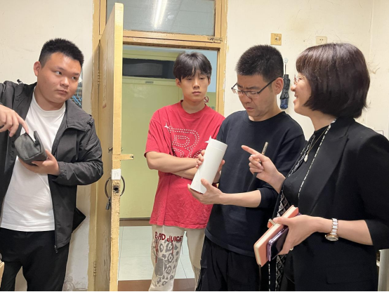 4月29日下午,张俊娜与辅导员一同走访五号包联公寓,对公寓的安全、卫生情况进行全面检查。