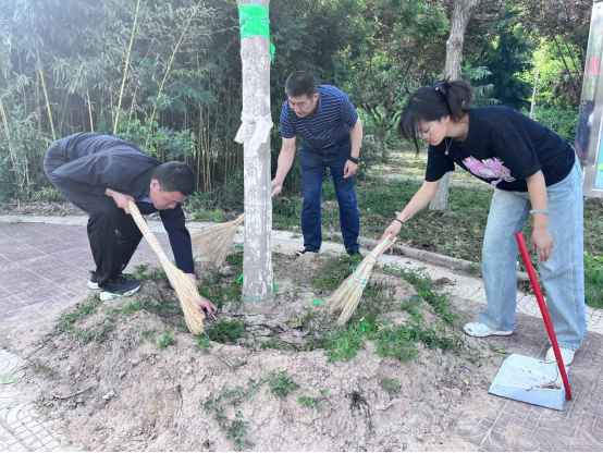 为迎接学校64 周年校庆活动,保证校园环境卫生状况良好,教育科学学院积极开展爱国卫生运动校园清扫活动,人事处处长景根杰、发展规划处处长徐军义,教育科学学院党总支书记李武军、党总支副书记马雷蕾、辅导员代表和学生代表参加本次活动。