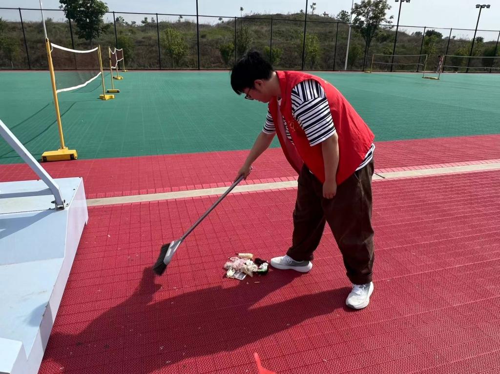学院师生积极投入到大扫除活动中。大家分工合作、团结一心,对学院多处地方进行了认真细致的清扫。在学院包联区域的篮球场,大家一丝不苟的捡拾地面的垃圾,沉积的灰尘被一扫而空,变得干净整洁。大家用自己辛勤的双手为校园创造了一道绚丽的风景线。