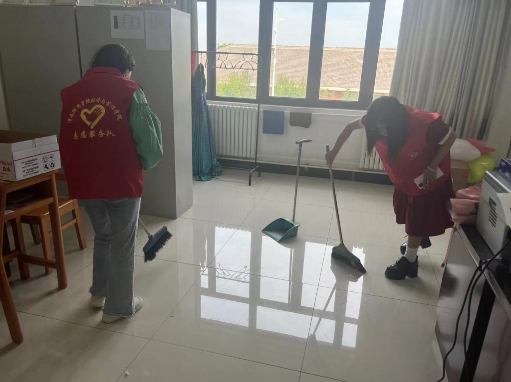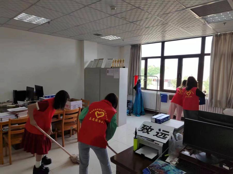 在办公区域,大家分工合作扫地、拖地、整理办公用品等,使室内干净整洁,地面无污渍、无纸屑、无杂物,办公环境焕然一新。