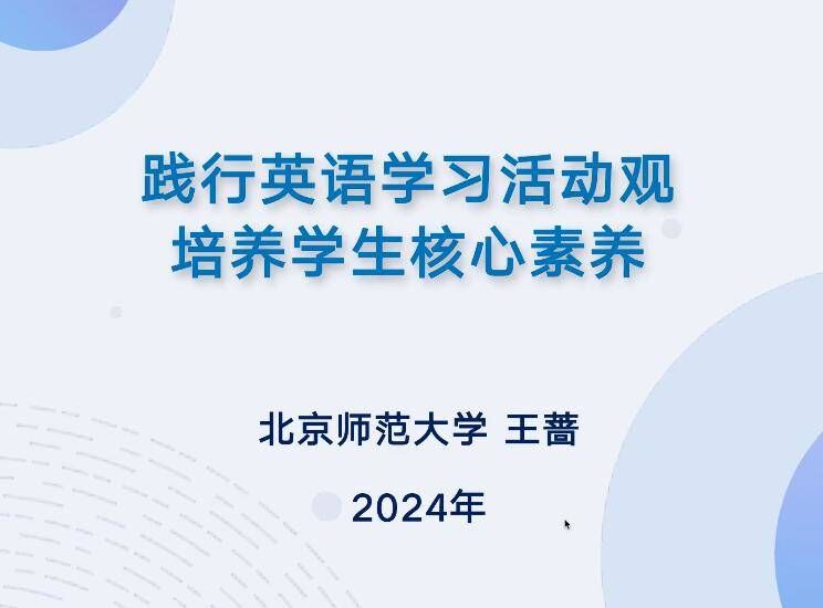 王蔷教授首先回顾了英语学习活动观提出的背景,强调了在全球化背景下,培养学生核心素养的重要性。她详细阐述了英语学习活动观的内涵、架构、实施路径和主要特点,指出这一观念以培养学生核心素养为目标,通过一系列相互关联、循环递进的融语言、文化、思维和学习能力发展为一体的活动,为教师组织课堂教学提供了切实可行的实施路径。此外,王蔷教授还通过具体的教学设计与实施过程案例分享,向我们展示了如何将英语学习活动观贯彻到中学英语教学中。