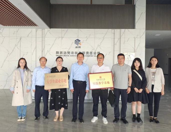 陕西沐梵农林有限责任公司总经理高峰对肖耀刚一行表示欢迎。详细介绍了企业的运营情况、业务范围、用人需求以及发展前景等。肖耀刚介绍了学校总体情况和此行目的,双方就毕业生就业、实习实训、科研项目合作等方面进行了深入交流并达成了合作意向,签订了共建大学生就业基地协议和实践教学基地共建协议,并对基地进行了挂牌。