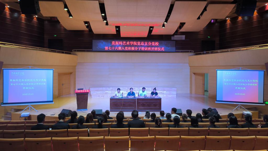 5月14日下午,莫斯科艺术学院分党校举行第七十六期入党积极分子培训班开班仪式暨党课第一讲,学院党总支书记孟波、副书记叶晓燕、学工办副主任段菲、党务秘书高梦涵、专职辅导员及入党积极分子32人参加会议。会议由高梦涵主持。