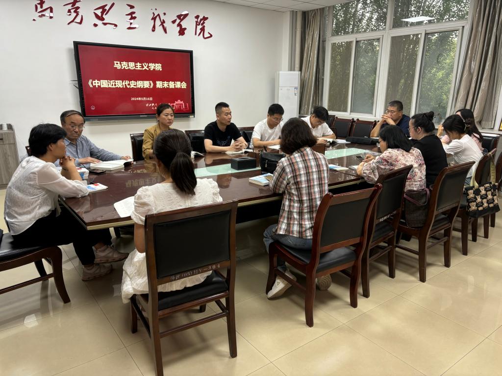 5月16日晚,《中国近现代史纲要》教研室全体教师召开期末集体备课会。进行教育教学大讨论、交流课堂教学经验和部署期末考试等。《纲要》教研室全体教师参加,教研室主任辛一凡主持。