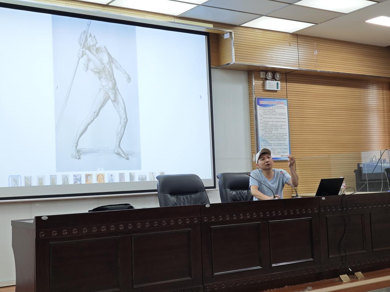 讲座中王健通过中西方代表性的绘画作品,分析了写生与创作美术作品的异同,创作区别于写生更重要的是对画面进行重组和建构,强调个人对事物的认知与情感的体现,他认为艺术创作需要扎实的功底,不拘泥于原有的形式和传统,要有创新。随后,王健讲述自己绘画认识的心路历程,为在场师生分享了他不同时期的作品,他认为一个画家对文化、历史以及人生的理解都应该表达在绘画创作中。讲座结束后王健与同学们进行了互动交流,热情地回答了同学们提出的问题。此次讲座为师生们带来诸多启发,讲座现场气氛热烈。