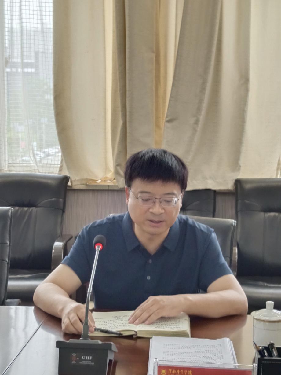 发展规划处处长徐军义结合省委教育工委、教育厅文件通知要求,从2021年以来相关重要文件、专项督查工作清单、试点评估要求、评估与督查方式、资料提交的内容及格式、专家组入校的工作安排等6个方面进行了工作部署,并就需要注意的问题进行说明。