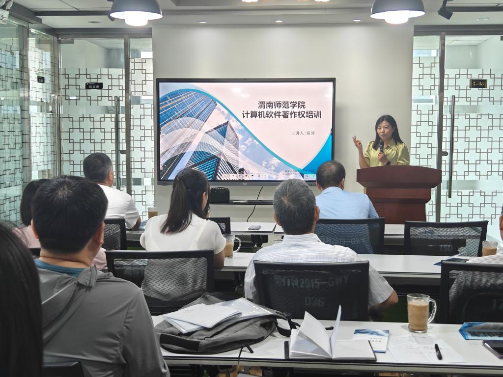 陕西瑧萃专利代理事务所工程师秦博从计算机软件著作权的定义,计算机软件著作权申请的流程以及软著实名认证、软著申请资料、证书模版等方面为参训教师详细讲解了计算机软件著作权及专利申报的相关知识。