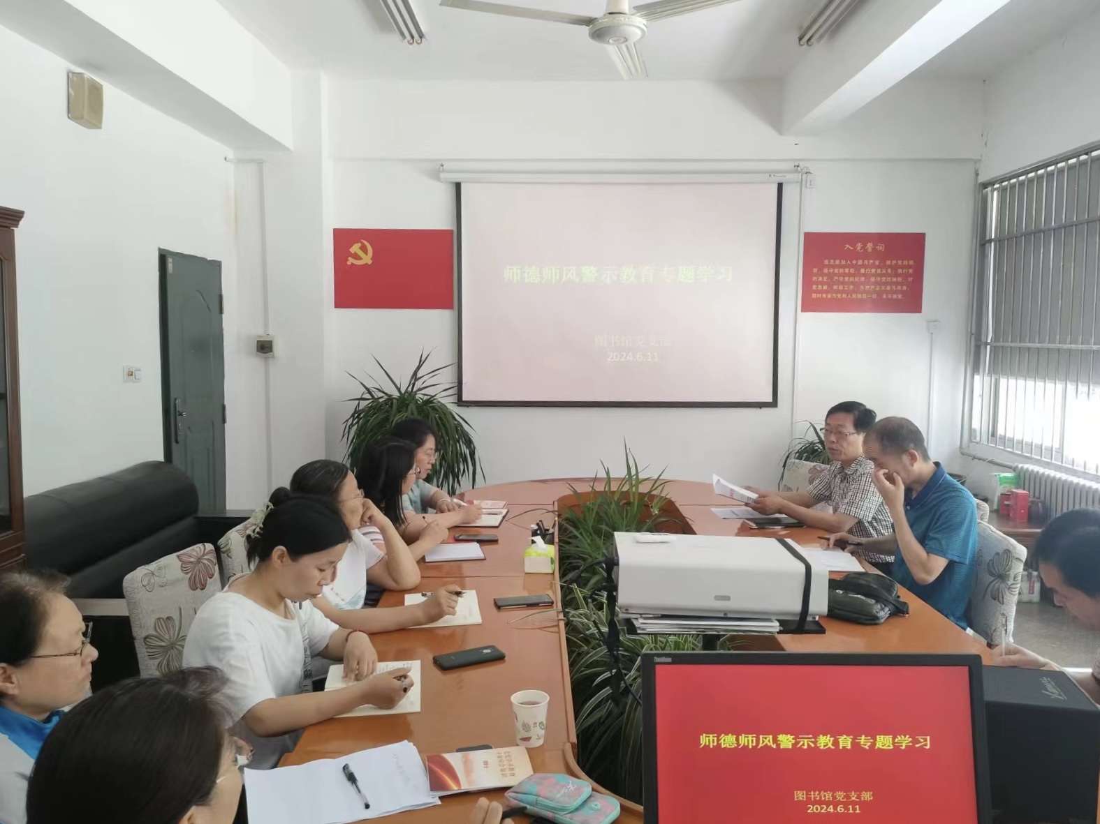 6月11日上午,图书馆党支部召开师德师风警示教育专题学习会议,以修师德、强师能、塑师风、铸师魂。