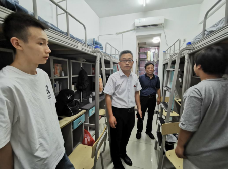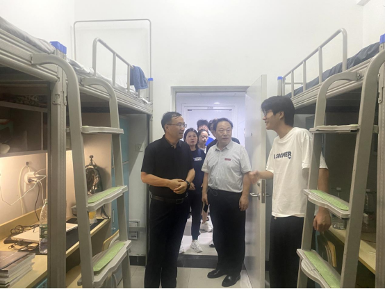 走访过程中,学院党政领导对新生报到情况进行详细汇报。领导们先后走访了学院2024级新生所在的9号公寓和7号公寓。每到一个宿舍,常青林详细询问了解新生的入住情况和生活状况,从安全、卫生、心理、学业、作息等方面进行叮嘱和关心,耐心解答学生和家长对各方面的疑问和难题,彰显了学校和学院对学生的人文关怀。