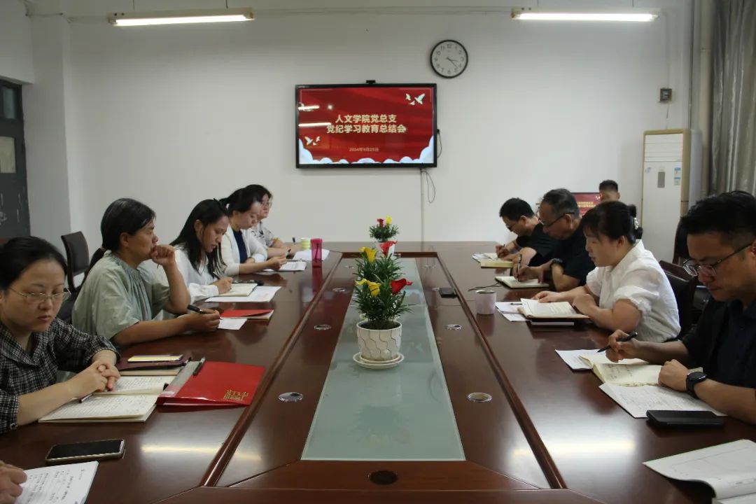 9月25日下午,人文学院党总支在博识楼1318会议室召开党纪学习教育总结会,学院全体处科级干部、各党支部书记、支部委员参加会议,会议由党总支书记张晶主持。