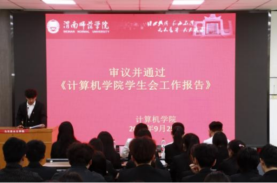 9月25日上午,计算机学院第八次学生代表大会在知新楼1101教室顺利召开,学院党总支副书记、副院长(兼)张俊娜、学工办主任李雷玮、辅导员范耿瑞以及136名学生代表参加本次会议,会议由院团委副书记王咿卜主持。