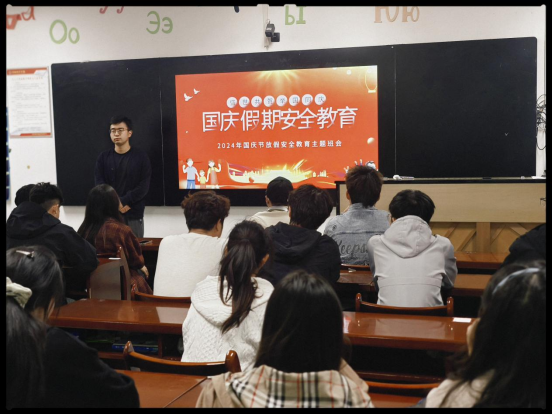 随后,辅导员以班为单位召开“国庆假期安全教育”主题班会,会上,辅导员强调了安全出行的重要性,要求学生拒绝乘坐无牌、无证、超载车辆及非法运营车辆,谨防交通事故和人身财产意外伤害事故的发生。并向大家讲解了帮信罪、掩隐罪、反电信网络诈骗法、青少年网络犯罪和文明上网等,指导同学们如何依法、礼貌、尊重、理性地使用网络,如何防骗、守护好自己的两卡从而更好地保护自己。警示学生不要被不法分子的“糖衣炮弹”所迷惑,时刻保护好个人信息,提高自身防范意识,谨防成为不法分子的“帮凶”。同时要遵纪守法,信贷安全,文明上网,不造谣、不信谣、不传谣,遵守公共场所规章制度,树立和践行社会公德意识,注重语言和行为文明。假期在校的同学要严格遵守学校各项管理规定,服从学校的管理,禁止夜不归宿和留宿校外人员,提高安全意识,合理安排假期生活。