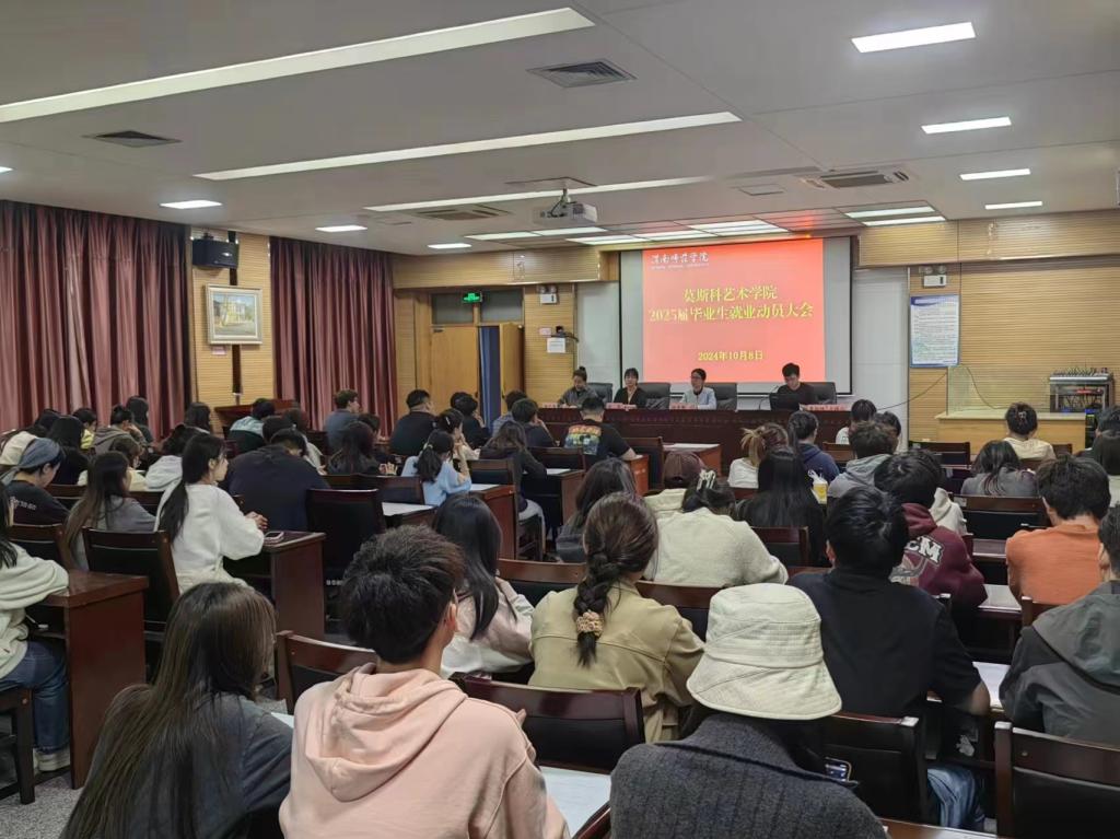 10月8日,莫斯科艺术学院在科学大讲堂召开毕业生安全教育暨就业动员大会,莫斯科艺术学院党总支副书记叶晓燕,学工办副主任段菲、辅导吴松林、师艺园及2025届毕业生200余人参加此次会议。会议由吴松林主持。