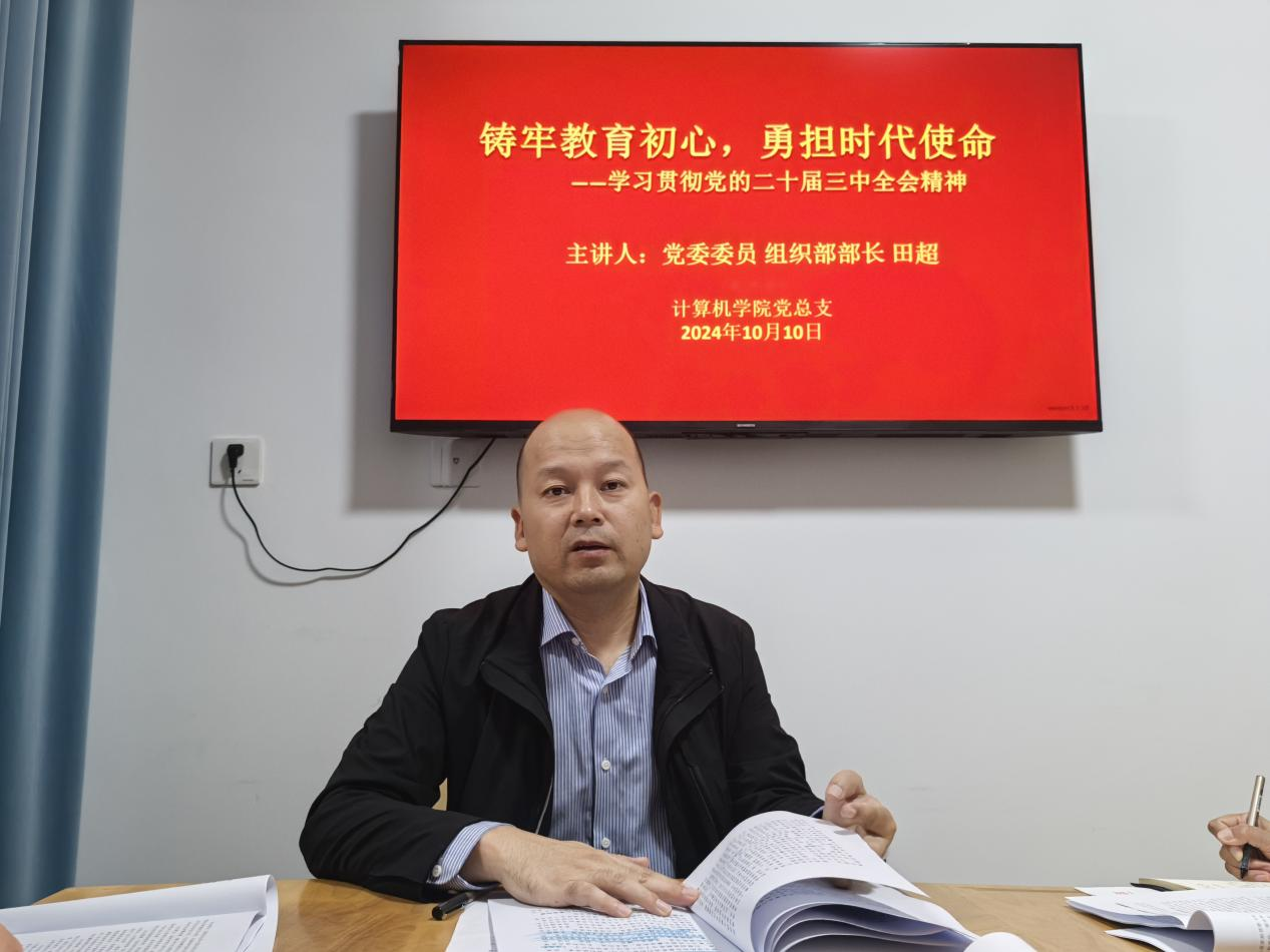 田超紧紧围绕深刻认识和理解把握党的二十届三中全会的主题、深入学习领会习近平总书记在党的二十届三中全会上的重要讲话精神、全面准确理解《决定》提出的进一步全面深化改革重大举措、全力以赴抓好全会精神贯彻落实等四个方面,结合生动的事例,对党的二十届三中全会精神进行了系统梳理和深入阐释,推动了党的二十届三中全会精神深入人心,确保了党的创新理论在基层中生根发芽。结合计算机学院的实际情况,他就如何将全会精神落实到学院的教育教学、学科科研和人才培养工作中提出了具体要求。