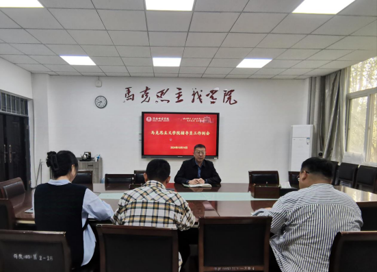 10月14日上午,马克思主义学院召开辅导员工作例会,学院党总支副书记肖飞、学工办副主任吴滑、辅导员关帅、陈晨参加。
