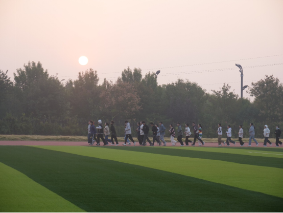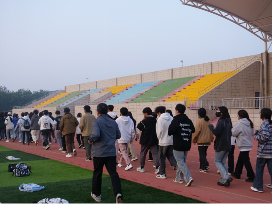 启动仪式后,学院领导和老师带头,和同学们一起精神饱满地进行了晨跑锻炼。