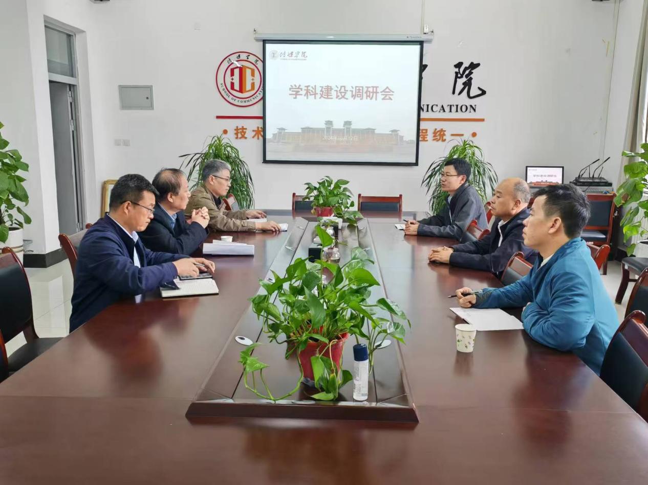 10月13日下午,副校长卢爱刚,学科建设办公室副主任秦玉伟,发展规划处副处长吕海波一行莅临传媒学院开展学科科研建设调研。传媒学院党总支书记田康顺、院长曹熙斌、副院长贺宏福参会。