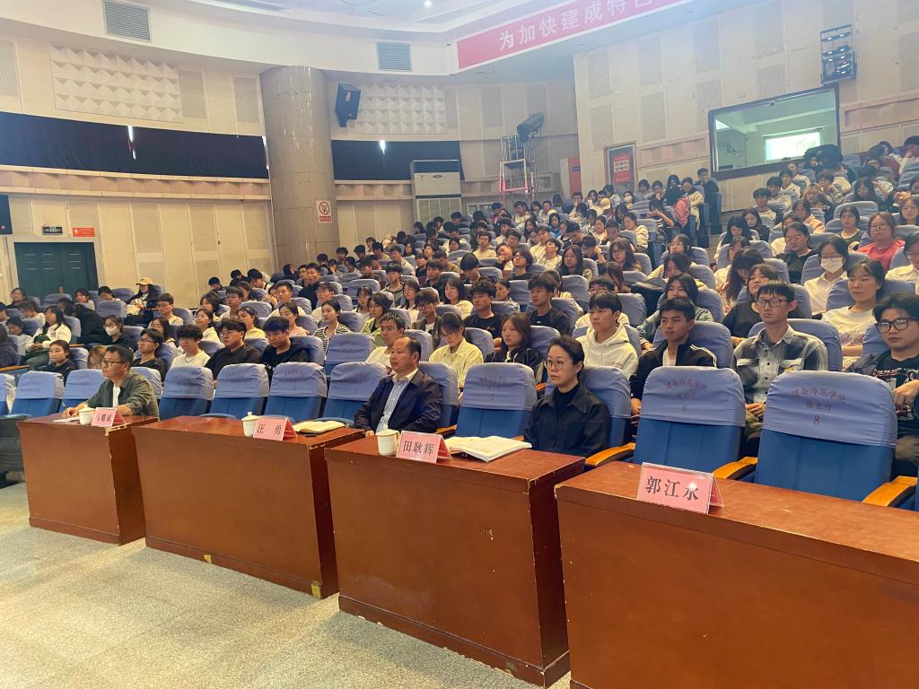 郭江水在报告中,为师生们深刻诠释延安精神的内涵与当代意义,希望师生们弘扬延安精神,培育家国情怀,弘扬英雄精神,激发奋进力量。