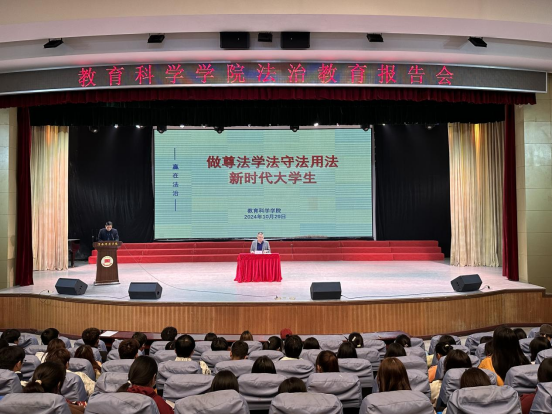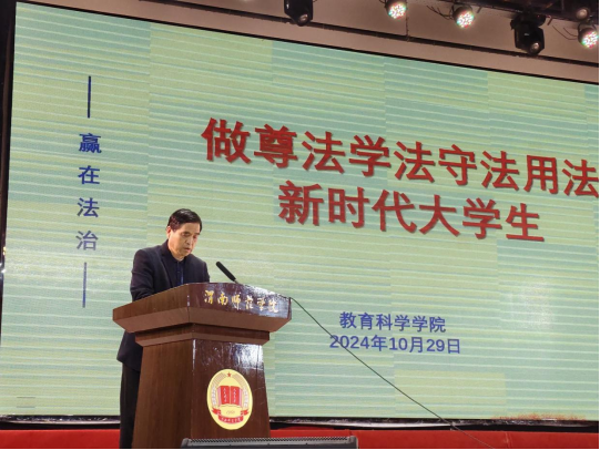 10月29日晚,教育科学学院邀请纽约国际官网法律顾问屈琦教授作“做尊法学法守法用法新时代大学生”专题报告。教育科学学院党总支书记李武军、新生辅导员李聿乔及2024级全体学生参加本次报告会。会议由李武军主持。