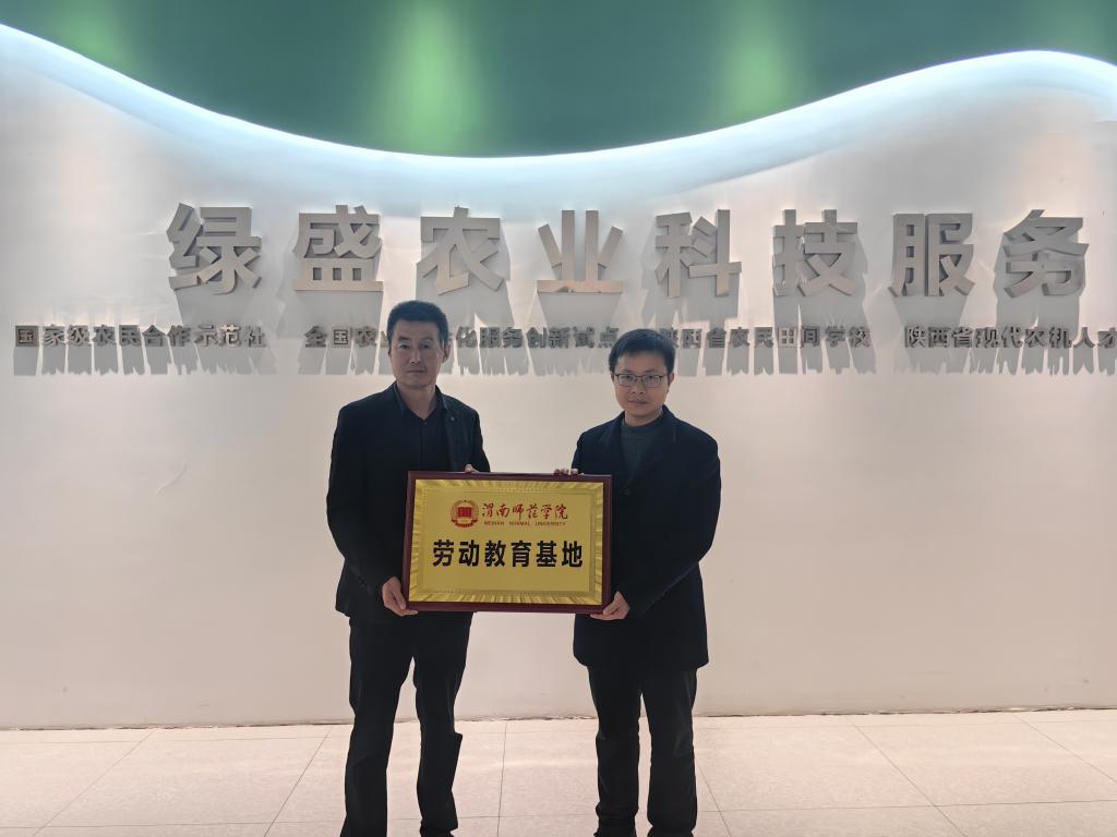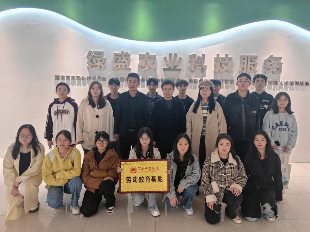 11月14日,数学与统计学院副院长戴磊、辅导员纪璐与学生们赴下邽镇绿盛农业科技有限责任公司进行学习参观并为劳动教育基地授牌。