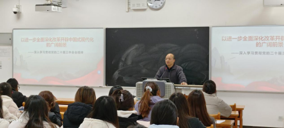 开班仪式结束后,李富荣讲授本期培训第一课:《以进一步全面深化改革开辟中国式现代化的广阔前景——深入学习贯彻党的二十届三中全会精神》。李富荣详细讲解了二十届三中全会的背景以及进一步全面深化改革的重大意义、总体要求、系统部署等内容,使学生有了更加全面和深刻的认识和理解。学生纷纷表示,党的二十届三中全会是在新的历史起点上推进全面深化改革的重要会议,会议提出的各项改革举措和决策部署,对于推动中国特色社会主义事业不断向前发展具有重要意义。