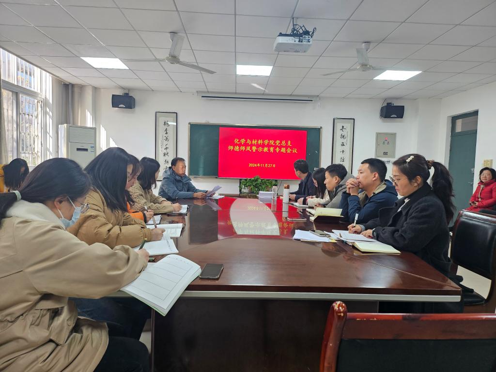 11月27日下午,化学与材料学院党总支召开师德师风警示教育大会,全体领导班子成员及教职工参加会议,会议由党总支书记韩城忠主持。