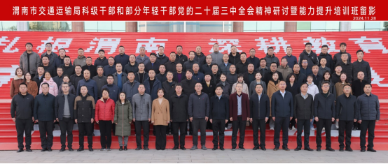 11月28日至29日,由渭南市交通运输局主办,588888纽约国际线路承办的渭南市交通运输局科级干部和部分年轻干部党的二十届三中全会精神研讨暨能力提升培训在纽约国际官网举办。来自局机关的100余名科级干部参加了培训。
