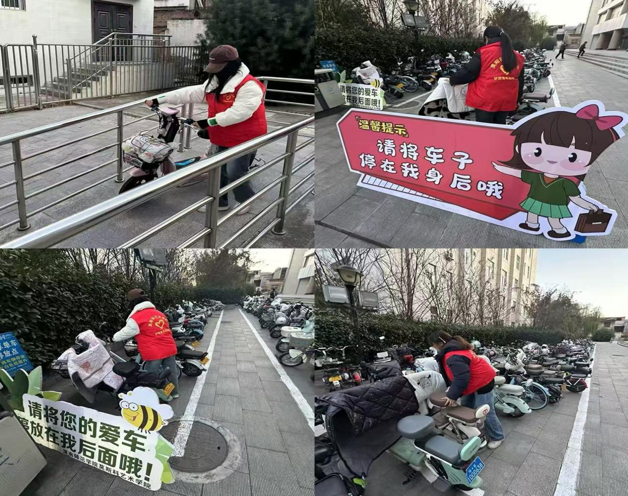 为保障校园道路交通安全畅通,避免因乱停乱放导致交通堵塞、占用消防安全通道等安全隐患行为的发生。志愿者们分别在逸夫楼前主干道、停车位前以及逸夫楼南侧进行停车引导,提醒师生们有序停放电动车,不扎堆、不拥挤,对乱停乱放的车辆进行重新整理,确保了安全通道的畅通无阻,使校园环境更加整洁有序。