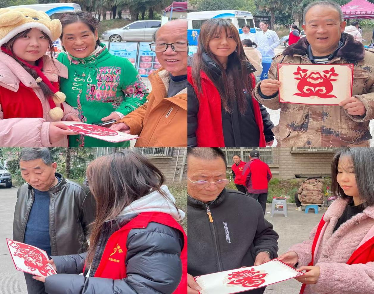 本次“红色集市”活动以居民“点单”,社区搭台,党员“摆摊”,群众“赶集”的形式,设置了红色知识我知道等摊位,以趣味的互动形式,寓教于乐,让广大居民在互动中了解学习红色知识。我院师生设置了特色剪纸展位,学生制作的剪纸形式多样,让居民们从中感受传统文化的魅力。此外还为社区居民测量血压,提供义工服务,用灿烂的笑容和贴心的服务,诠释着志愿精神。