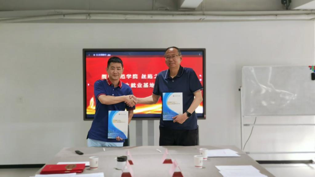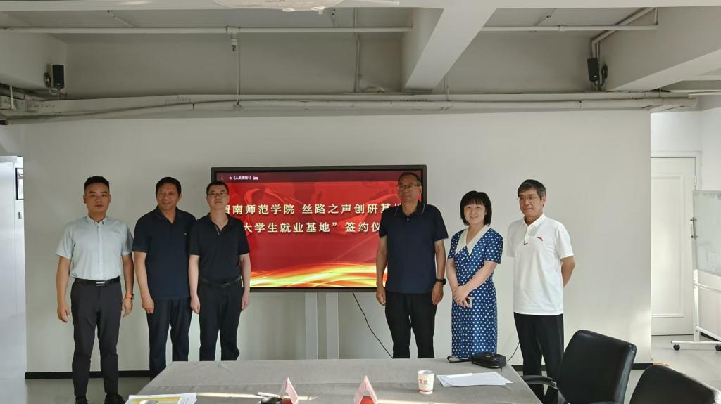 5月23日下午,人文学院党总支书记张晶、院长赵前明、学工办副主任孟子祥一行赴西安访企拓岗,与陕西新动向传媒股份有限公司旗下的丝路之声广播剧创研基地签订共建大学生就业基地协议。