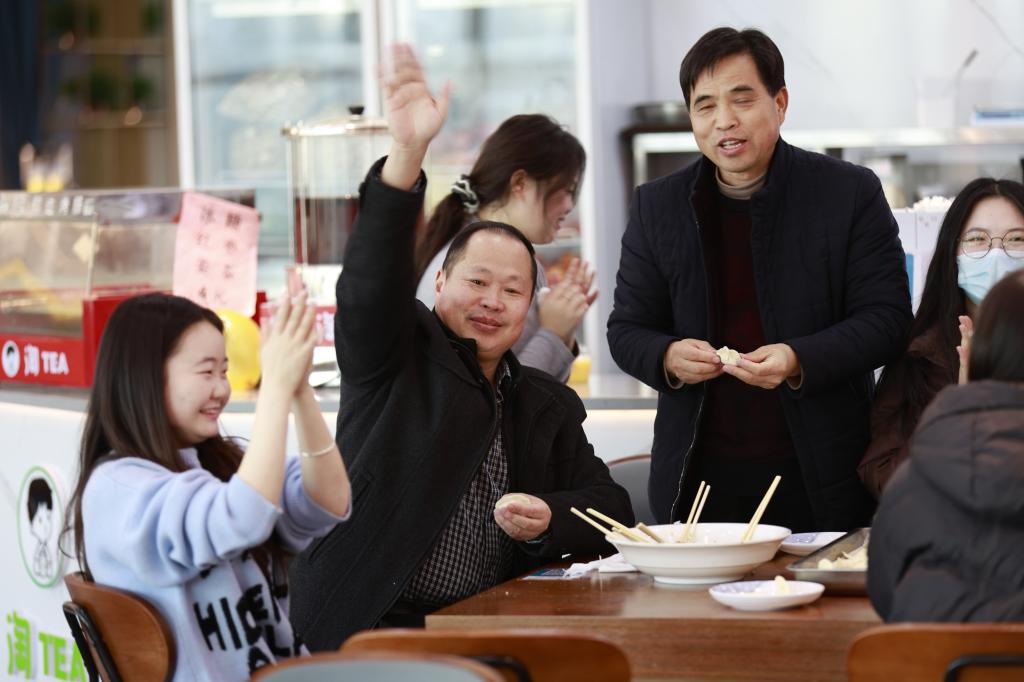 12月20日,教育科学学院在第一餐厅举办“冬至映春生,煮饺话新篇”迎冬至主题活动,校党委副书记汪勇、教育科学学院党总书记李武军、院长李西彩、党总支副书记马雷蕾、副院长马雅菊以及师生代表参与。