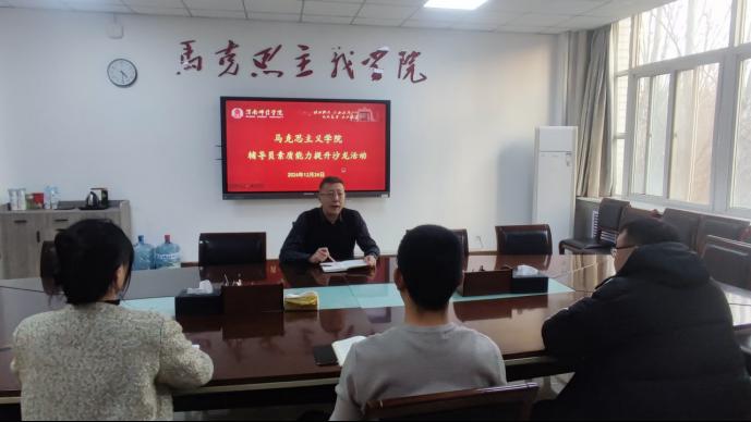 12月24日,马克思主义学院举办“提升政治素养,加强思想引领”主题沙龙,以提高辅导员专业化职业化水平,探讨如何增强学生对辅导员的信服感以及构建良好的相处模式,把握思政工作原则,切实做好学生思想引领工作。