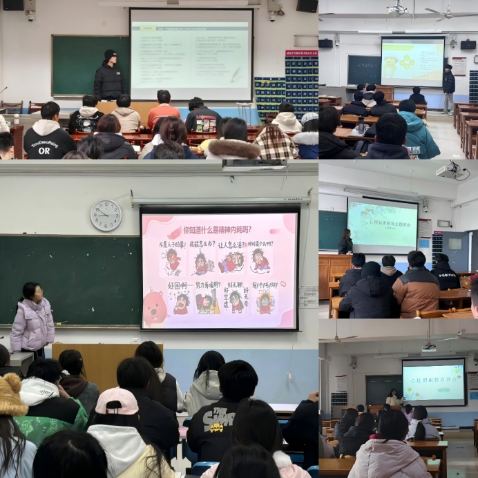 班会上,各班辅导员首先向同学们介绍了心理健康的重要性,并指出当前大学生面临的种种压力来源,重点强调了正确的压力管理对于大学生身心健康和学业成就的重要性。接着各班心理委员结合当前大学生心理健康的现状,围绕环境适应、沟通合作、人际互动、压力缓解、自我探索等方面可能会出现的心理问题,分享了有效的应对技巧,同时也对即将到来的期末考试周为同学们提供了一些减少焦虑的方法。