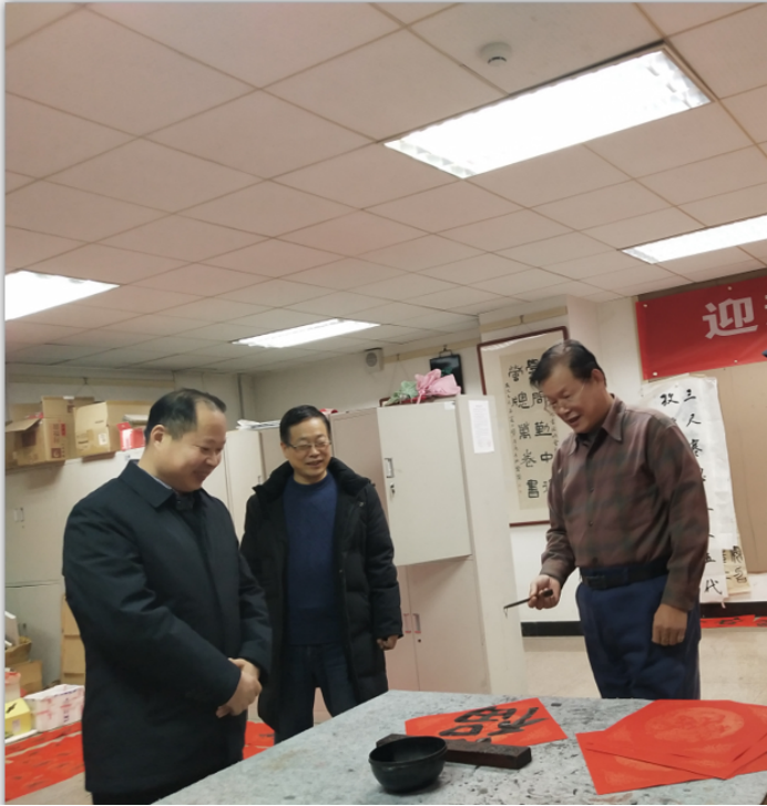 12月26日下午,附属单位分会和渭南市书画教育协会联合举办“迎新春送春联”活动。党委副书记汪勇亲临现场,把温暖和祝福送至附属分会每一位职工。