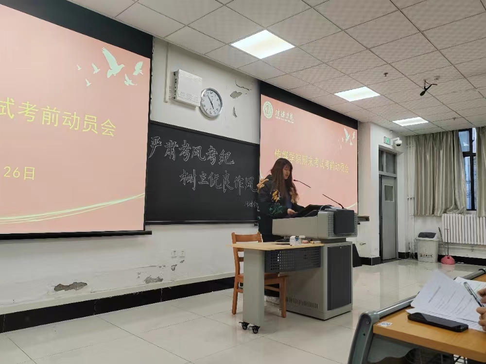 党总支副书记周双强调了期末考试的重要性以及考试作弊的严重后果,勉励全体学生端正考风,以诚信的品质完成对自我的检验。