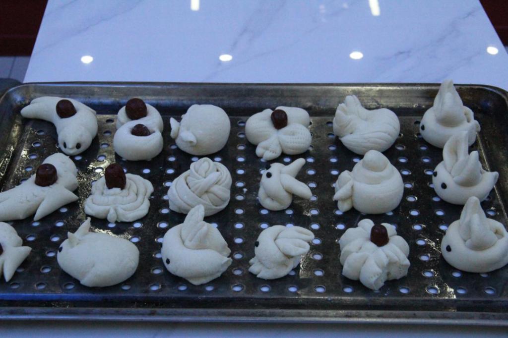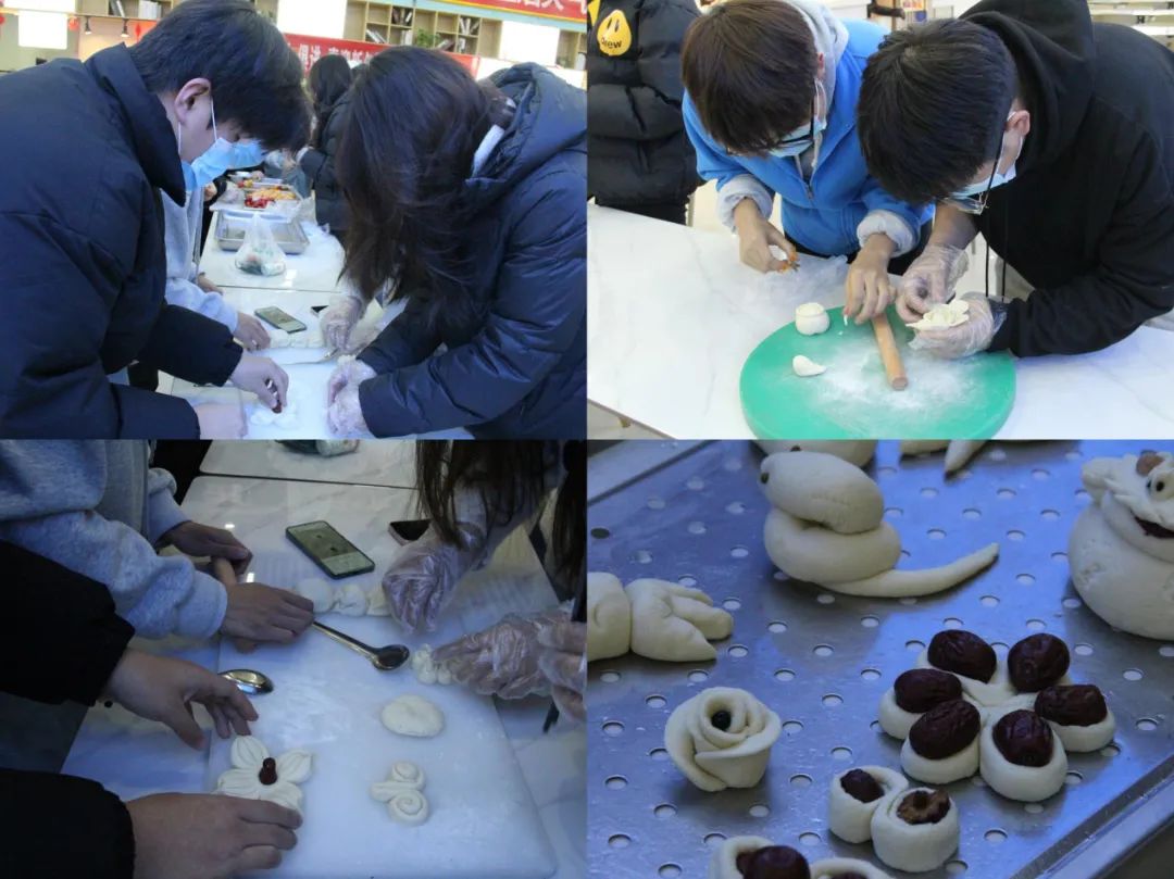 活动现场气氛热烈非凡,同学们踊跃参与。面团在食堂阿姨的手下,经过揉、捏、搓等一系列动作,再借助梳子、刻刀精心雕刻,转瞬之间,寓意吉祥的各式花鸟鱼虫造型便呈现出来。同学们纷纷模仿学习,充分发挥奇思妙想,打造出了别具一格的花馍,灵动可爱的鱼、栩栩如生的蛇,每一个都活灵活现。