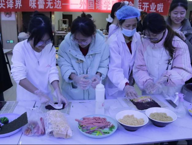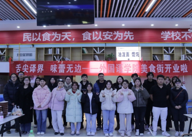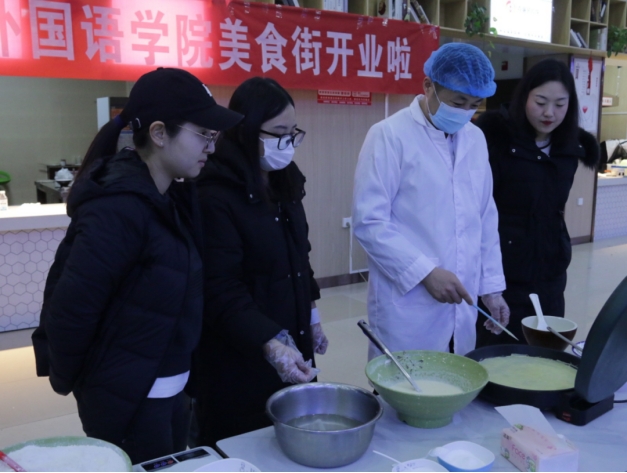 1月7日下午,外国语学院于二餐三楼举办“舌尖译界,味蕾无边”美食文化节活动。学院党总支副书记、副院长高军强,学工办副主任敬菲菲,全体辅导员及20余名同学参与。