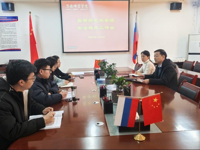 1月8日,莫斯科艺术学院召开假期学生安全稳定专题会议,党总支书记孟波、党总支副书记叶晓燕、学工办副主任段菲及全体辅导员参加此次会议。