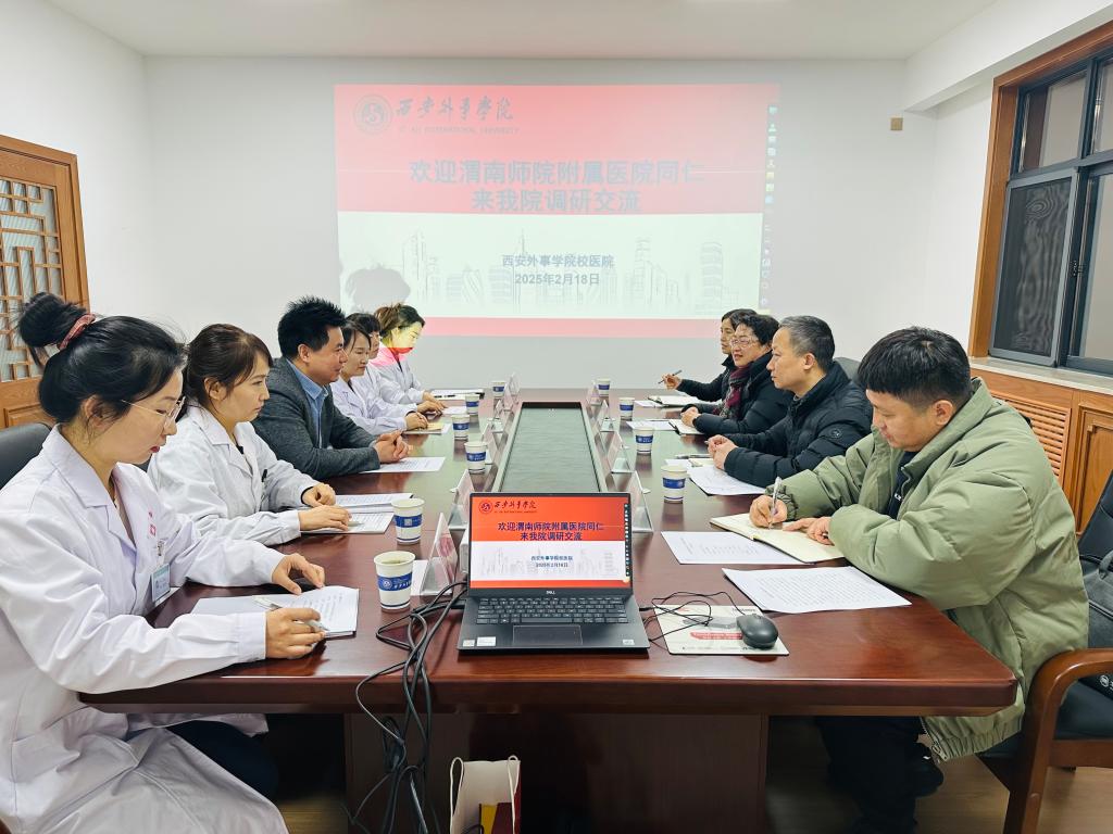 2月18日上午,附属医院党支部书记王雅蓉、院长段楚雷、副院长王新英、办公室主任王鹏一行4人赴西安外事学院校医院交流调研。此次调研旨在借鉴西安外事学院在医院运营发展、校园公共卫生和传染病防控、大学生医保管理及产学研结合等方面的先进经验,为办好学校2025年十大民生实事,推动纽约国际官网附属医院高质量发展,奠定良好基础。
