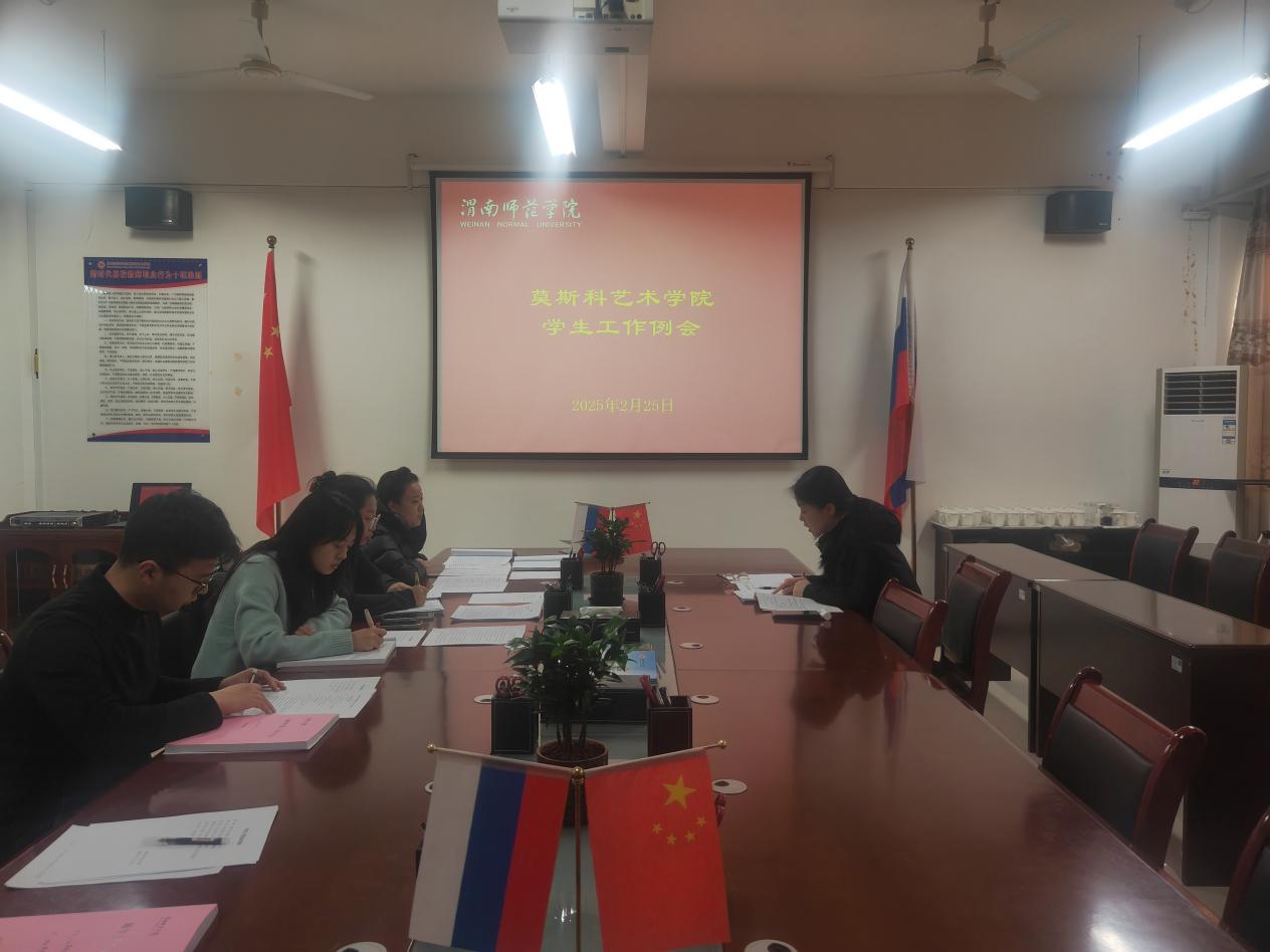2月26日,莫斯科艺术学院召开学生工作例会暨就业创业工作推进会,学院党总支书记叶晓燕,学工办副主任段菲及全体辅导员参会,会议由段菲主持。