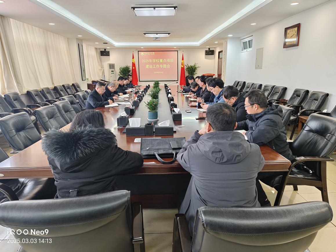 3月3日,在厚德楼四楼第二会议室召开2025年重点项目建设工作专题会,发展规划处、教务处、国有资产管理处、学生工作部、后勤服务中心、网络与教育技术中心等归口部门负责人以及拟建设项目申报单位负责人参加了会议。会议由副校长卢爱刚主持。