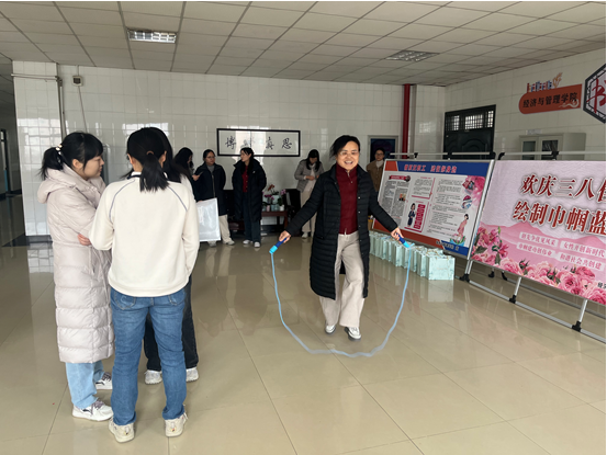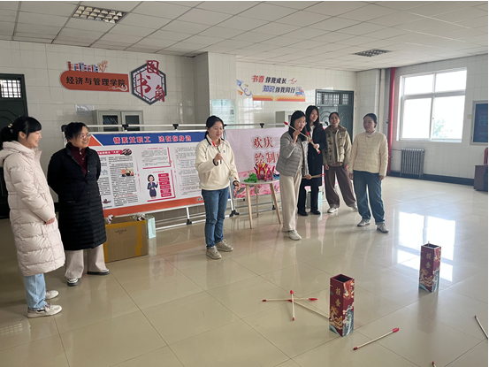 3月4日上午,经济与管理学院分会于一号教学楼四层东侧大厅举办中华传统文化体育活动。此次活动以投壶、跳绳、踢毽子等传统体育项目为主要内容,学院女职工们踊跃参与。
