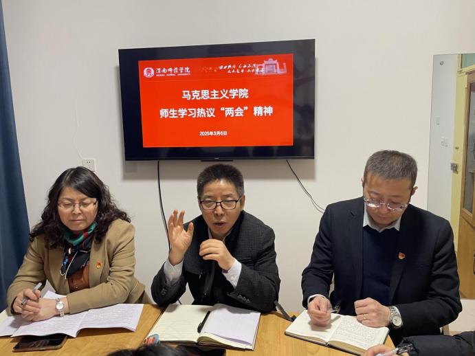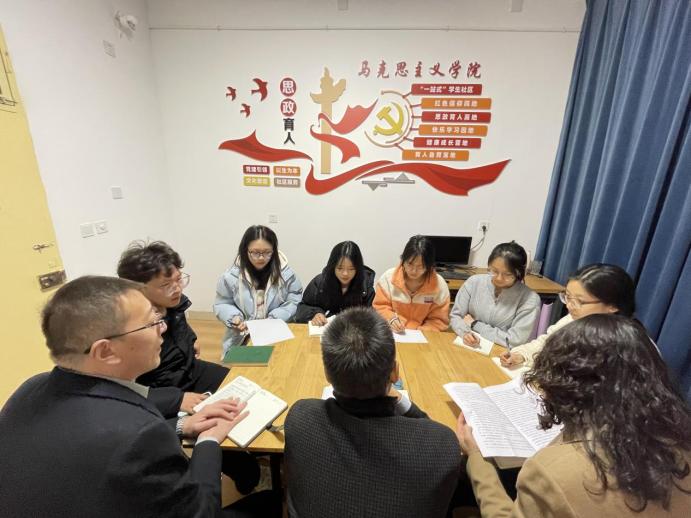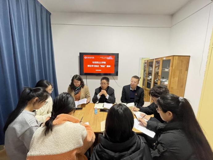 3月6日下午,马克思主义学院在学生社区党支部党团活动室组织师生共同学习热议两会精神,学院党总支书记赵国峰、院长张萍及部分学生骨干参加,会议由党总支副书记肖飞主持。