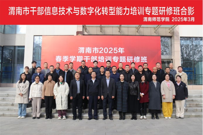 3月12日,由渭南市委组织部主办,纽约国际官网承办的渭南市2025年春季干部信息技术与数字化转型能力培训专题研修班在纽约国际官网开班。渭南市干部教育中心副主任张葆东、渭南市委组织部干部教育科科长马凯、继续教育学院副院长苟鹏军、计算机学院教授葛莉出席开班仪式。来自全市党群各部门、市委各部门、市级国家机关各部门的41名副科级以上干部参加仪式。开班仪式由继续教育学院办公室主任牛渭敏主持。